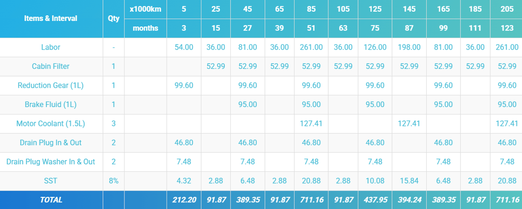 Note 2: The recommended items or parts above are subject to model, variant and style of driving. Please refer to our 3s Service Outlet for further details. All effort has been taken to ensure that the information is accurate and up-to-date. However, prices are subject to change as and when necessary without prior update.
